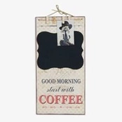 Drewniana tablica dekoracyjna "Good morning start with coffee", tablica do pisania, wieszak.