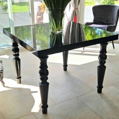 Biały, drewniany stolik na wysoki połysk, toczone nogi.
