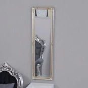 Barokowe, prostokątne lustro, drewniana rama, kolor srebrny.