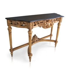 Barokowa konsola, kolor ciemnozłoty, czarny blat.