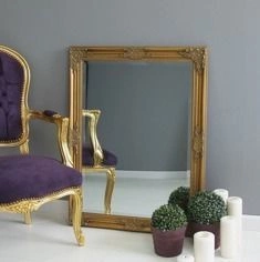 Lustro w drewnianej, złotej ramie.