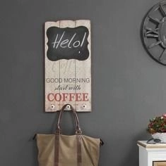 Drewniana tablica dekoracyjna "Good morning start with coffee", tablica do pisania, wieszak.
