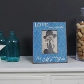 Ramka na zdjęcie, niebiesko- kremowe wzory, styl rustykalny.