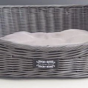 Owalne lustro z ozdobną wstążką, brązowa rama z białą przecierką.