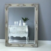 Lustro, drewniana, ozdobna rama, kolor biały.
