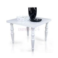 Drewniany, biały stolik w kwadracie, wysoki połysk, toczone nogi, biały.