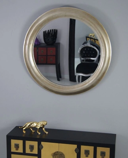 Lustro w drewnianej ramie malowanej na złoty kolor, który przemalowany jest srebrną farbą. Doskonale pasuje do stylu azjatyckiego.