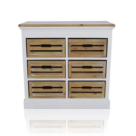 Komoda z serii PROVANCE, matowa biel, sześć skrzyń, naturalne drewno.