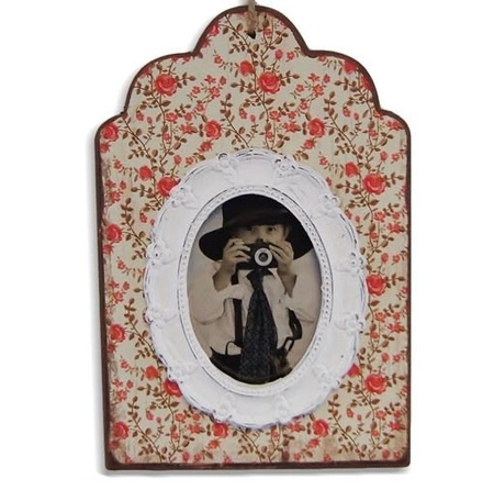 Nostalgiczna ramka do zdjęć w drobne różyczki.