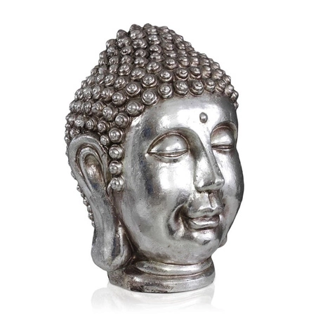 Figura przedstawiająca głowę Buddy, z charakterystycznymi wydłużonymi uszami oraz misternie ułożonym lokami. Długie uszy to symbol życia jako podróży oraz charyzmy, siły życiowej i mądrości. Natomiast punkt między brwiami to miejsce, gdzie schodzą się kanały energii. Popularna jest medytacja na ten punkt.