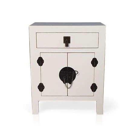 Komoda, stolik nocny, metalowe okucia, styl azjatycki, biały.