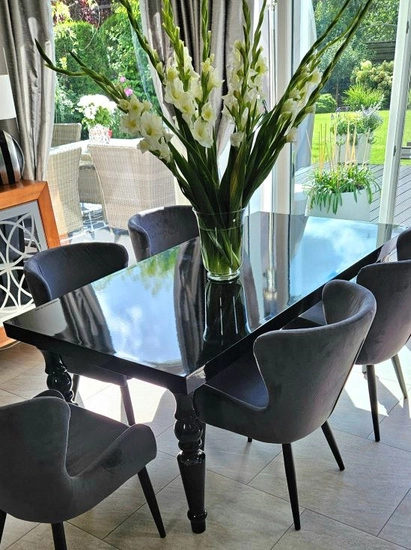 Stół do jadalni, piękne, toczone nogi, wysoki połysk, czarny